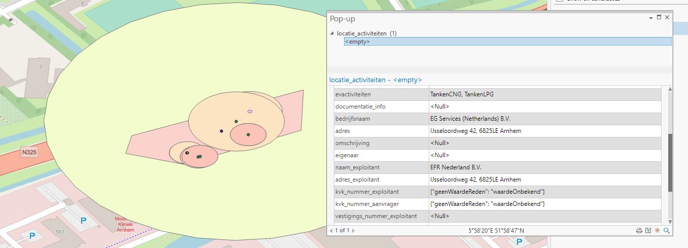 Terwijl in de mapservice nadruk ligt op de cartografische visualisatie van de data en specifieke gegevens enkel per geografisch punt op de kaart zijn op te vragen, biedt de web feature service (WFS) de mogelijkheid om grote hoeveelheden data te raadplegen of te analyseren. De WFS maakt onderliggende data volledig inzichtelijk. Deze data zijn in een tabel te bekijken en het is mogelijk berekeningen en data-analyses te maken in bijvoorbeeld een GIS-applicatie. De WFS is een open standaard onder beheer van het Open Geospatial Consortium (OGC), wat onder meer betekent dat deze eenvoudig te gebruiken is in de meeste GIS-applicaties, waarvan gratis exemplaren online beschikbaar zijn. In de afbeelding hieronder is de WFS voor een stationaire bron weergegeven. Zoals zichtbaar in de pop-up wordt er data meegeleverd bij deze service.