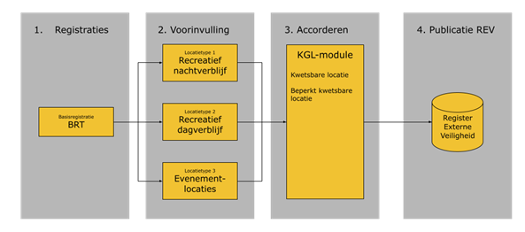 - Op een speciale webpagina https://www.registerexterneveiligheid.nl/kglinfo wordt de aanpak toegelicht. Steeds per type locatie worden eerst de wetteksten en daarna een motivatie van de keuzes (algoritme) uitgelegd.