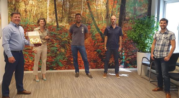 Op de foto van links naar rechts: Programmamanager I-GO John Rayer, Liesbeth Spoelma en van het I-GO team Tjiko Schutte, Jan Sanders en Wouter Meijboom